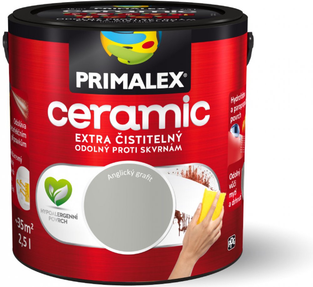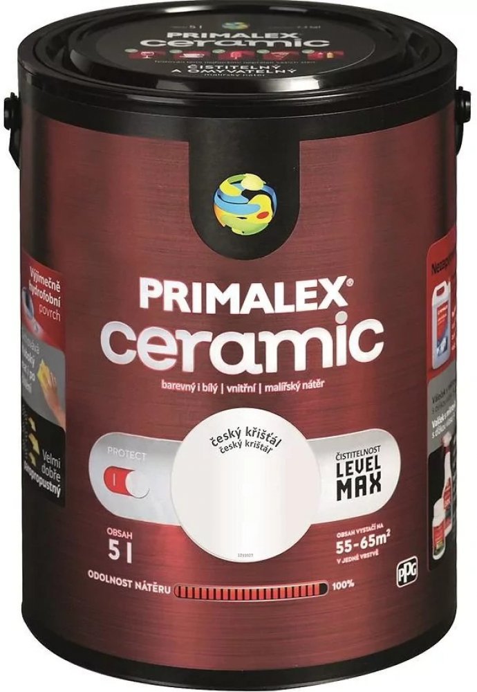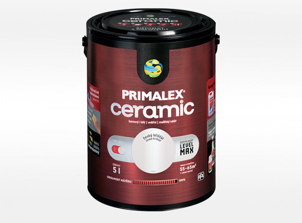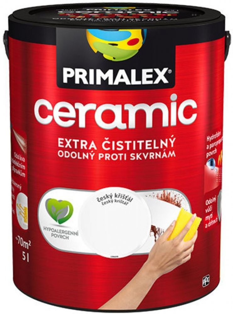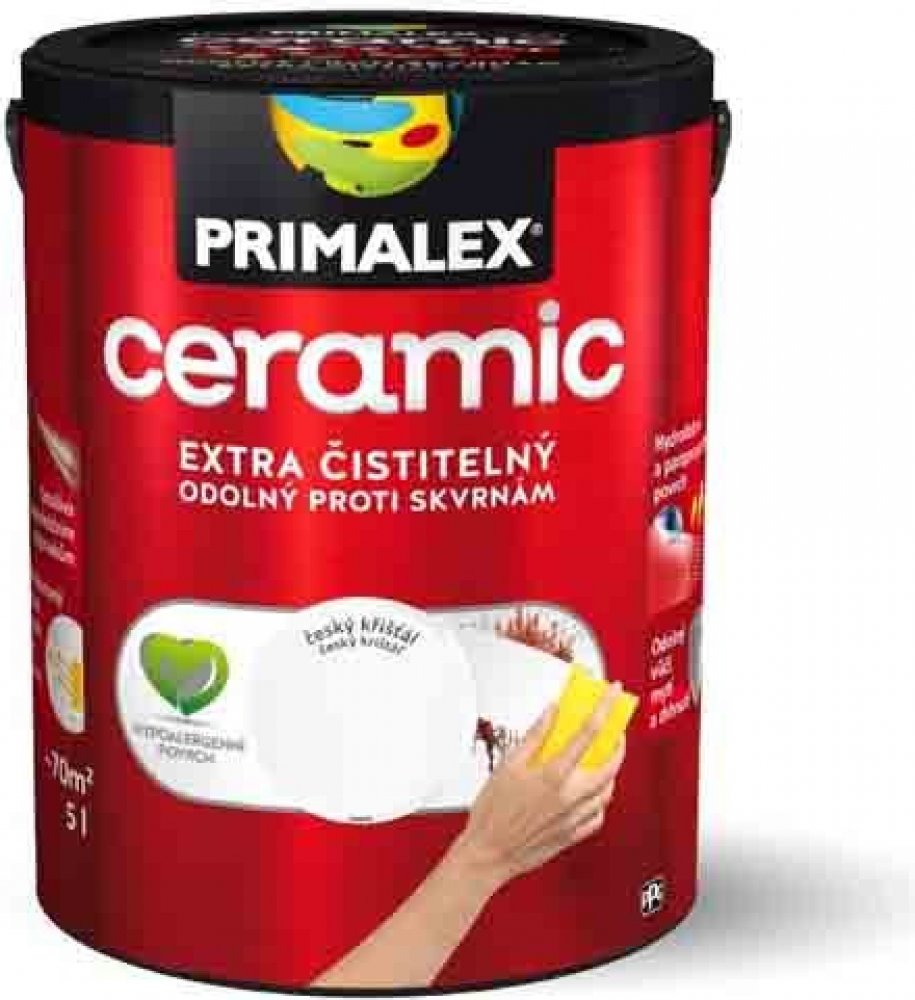 Omyvatelný a čistitelný barevný i bílý vnitřní malířský nátěr 1) Výjmečně hydrofobní povrch 2)Zachovává hluboký mat i po čištění 3)Velmi dobře paropropustný Omyvatelná, ale i čistitelná interiérová barva Primalex CERAMIC představuje moderní generaci speciálních interiérových barev, které použitím inovativních hydrofobních částic minimalizují průnik tekutých nečistot do hloubky a vytvářejí tak eleg...