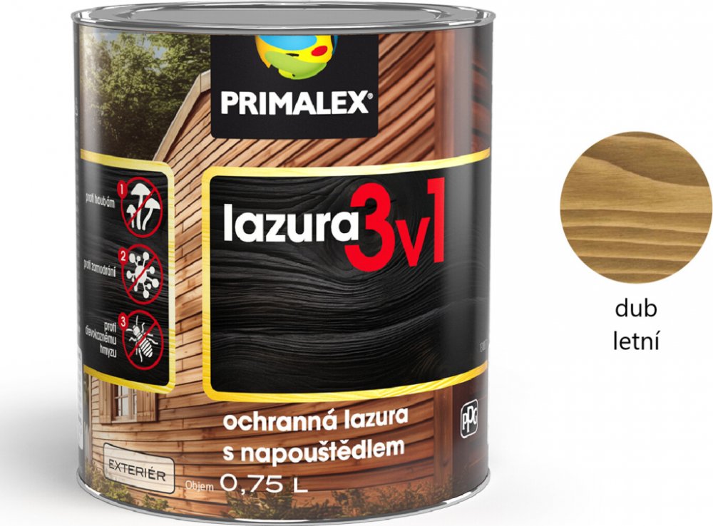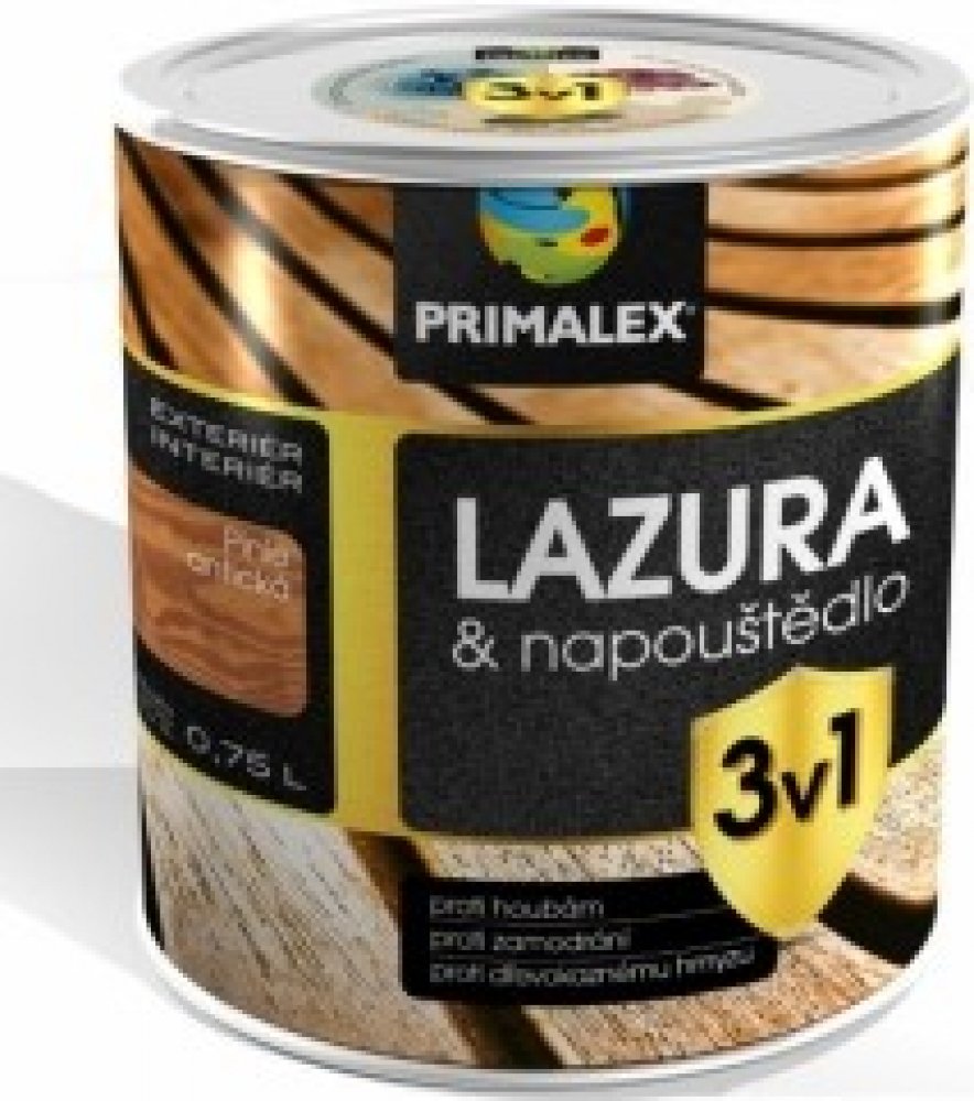 Primalex LAZURA & NAPOUŠTĚDLO 3v1 je určena k dekoračním vrchním nátěrům dřeva především pro venkovní prostředí. Lazura zvýrazňuje kresbu dřeva, zajišťuje ochranu proti zamodrání dřeva, proti houbám a dřevokaznému hmyzu. Zároveň lazura zvyšuje odolnost proti vodě a povětrnostním vlivům včetně UV záření.