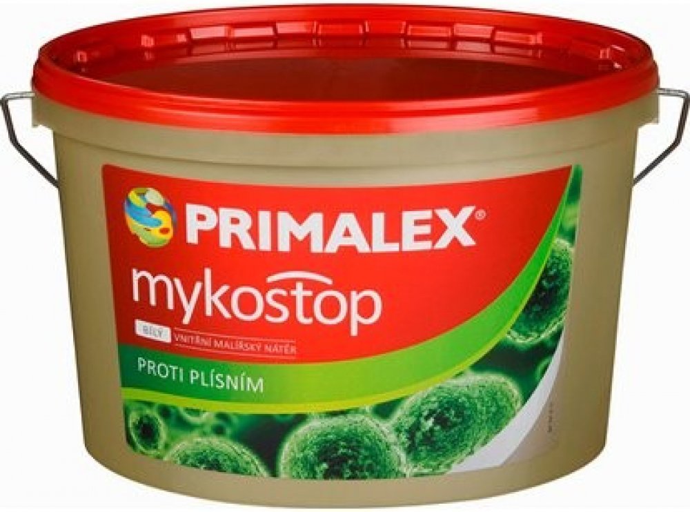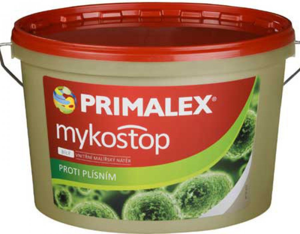 Primalex MYKOSTOP je speciální otěruvzdorný nátěr s velmi dobrou kryvostí, vysokou bělostí (min. 92% BaSO4) obsahující navíc účinné fungicidní látky, které likvidují plísně a současně mají i preventivní protiplísňový charakter. mykostop