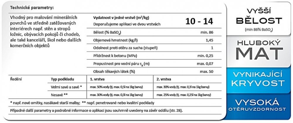 - Vydatnost 10 - 14 m²/kg