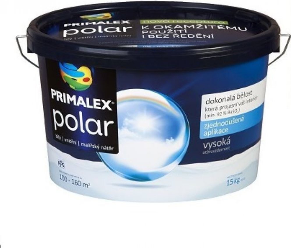 Primalex POLAR Bílý nabízí dokonalou bělost, která projasní váš interiér. Díky pečlivému výběru nejkvalitnějších kalcinovaných vápenců a vysokému podílu titanové běloby můžeme garantovat nejvyšší stupeň „polární“ bělosti (min. 92% BaSO4). S Primalexem POL Primalex POLAR Bílý nabízí dokonalou bělost, která projasní váš interiér. Díky pečlivému výběru nejkvalitnějších kalcinovaných vápenců a vysokém...