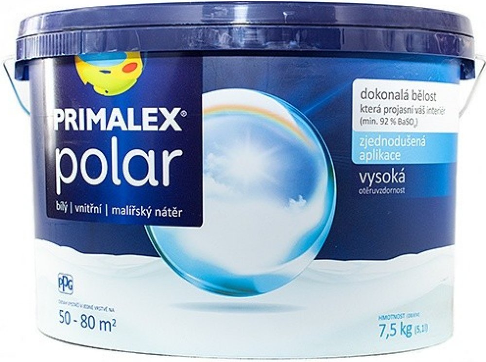 Primalex POLAR Bílý nabízí dokonalou bělost, která projasní váš interiér. Díky pečlivému výběru nejkvalitnějších kalcinovaných vápenců a vysokému podílu titanové běloby můžeme garantovat nejvyšší stupeň „polární“ bělosti (min. 92% BaSO4). S Primalexem POLAR získáte dojem většího a vzdušnějšího prostoru vašeho interiéru. Splní tak i vaše nejnáročnější představy o exkluzivním matném vzhledu vašich s...