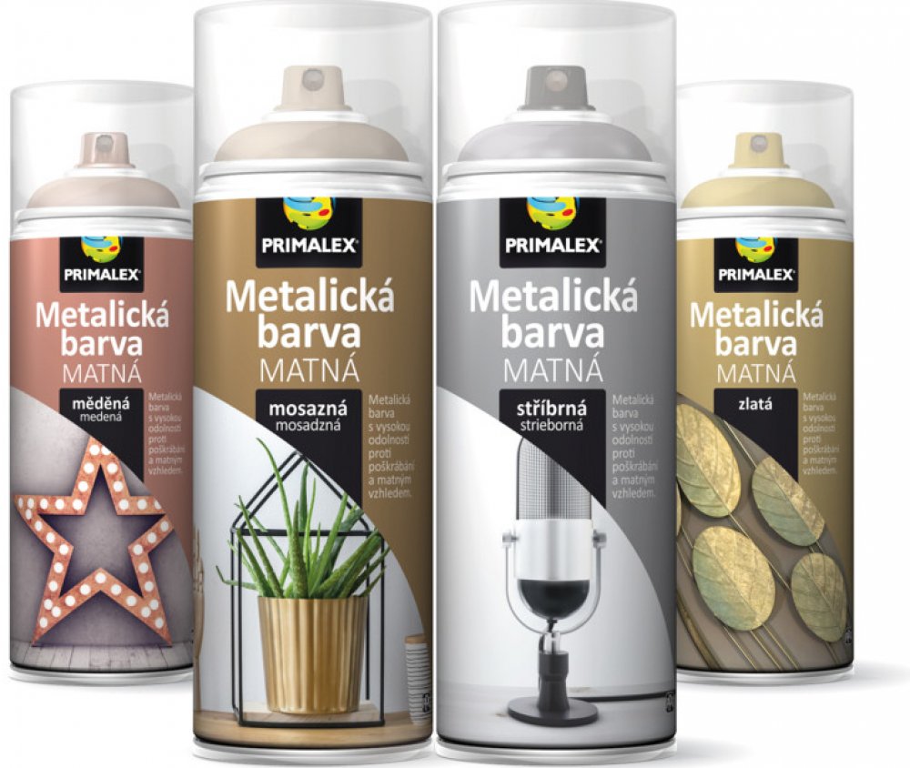 Speciální syntetická vrchní barva s vysoce kvalitními kovovými pigmenty, které vytváří velmi efektní matný metalický vzhled na povrchu materiálu. Je dostupná ve čtyřech vybraných odstínech. Vyznačuje se vynikající přilnavostí, odolností proti poškrábání i dlouhodobým zachováním kovového efektu. Velmi rychle schne a snadno se aplikuje. Vhodná pro interiér i exteriér.