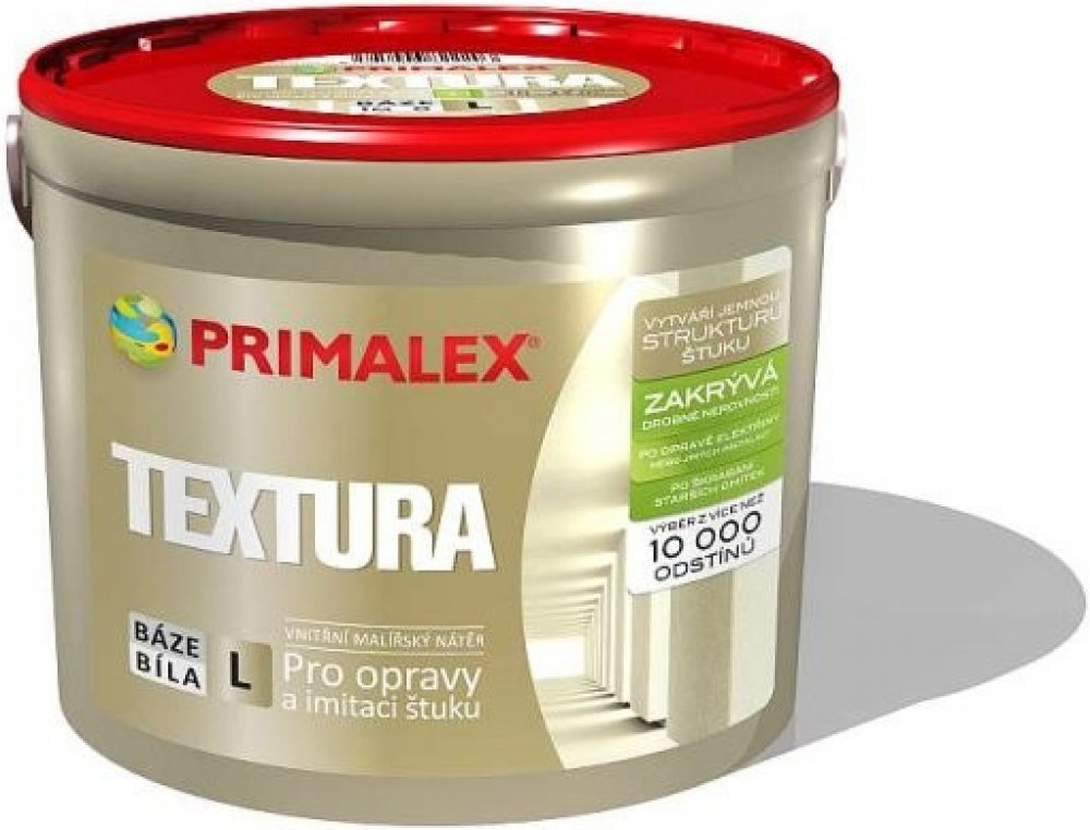 Primalex TEXTURA použitím vhodného plniva s jemnou zrnitostí umožňuje věrohodné napodobování jemné štukové struktury formou otěruvzdorného nátěru s velmi dobrou krycí schopností. Primalex TEXTURA použitím vhodného plniva s jemnou zrnitostí umožňuje věrohodné napodobování jemné štukové struktury formou otěruvzdorného nátěru s velmi dobrou krycí schopností. Současně díky možnosti jejího obarvování v...