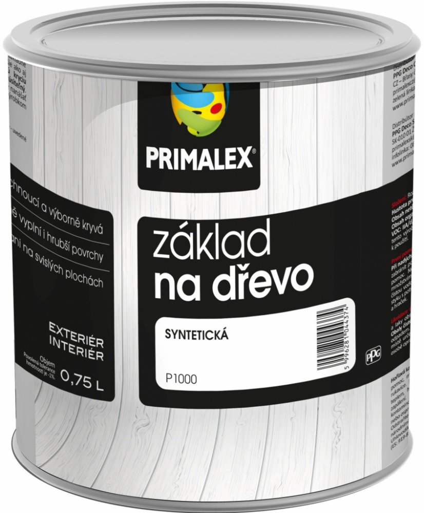 PRIMALEX Základní barva na dřevo je určena pro základní nátěry dřevěných povrchů ve vnějším i vnitřním prostředí. Nátěr má velmi dobrou krycí schopnost, rychle schne a je velmi dobře brousitelný. Nestéká ani na svislých plochách. Barvu lze nanášet i jako mezivrstvu na kovové povrchy natřené PRIMALEX Základní barvou antikorozní (zejména pod syntetické vrchní barvy lesklé). Výhody Rychleschnoucí s výbornou krycí schopností Perfektně vyplňuje i hrubší povrchy Nestéká ani na svislých plochách Vydatnost 12 m²/l Doporučujeme nanášet v 1 - 2 vrstvách Neředí se, připraveno k okamžitému použití Doba schnutí Při teplotě 23°C a relativní vlhkosti 50% Zaschnutí proti prachu: 2 hodiny Přetíratelnost: 7 hodin Úplné zaschnutí: 12 hodin Nižší teplota a vyšší vlhkost vzduchu prodlužují dobu schnutí. Příprava podkladu Povrch dřeva před aplikací musí být čistý, dokonale vybroušený a zbavený prachu. U povrchů, které již byly dříve natírány a které jsou v dobrém stavu (tj. původní nátěr se neolupuje a nepraská) povrch očistěte a jemně přebruste smirkovým papírem. Poškozené nebo nekvalitní nátěry odstraňte. Požadovaná vlhkost dřeva je 12%. Nové dřevěné povrchy - dokonale (do hladka) vybruste, očistěte a zbavte prachu. Případné pryskyřice z povrchu odstraňte vymytím vhodným rozpouštědlem. Staré, popraskané a olupující se nátěry - úplně je odstraňte (obroušením, tryskáním, horkovzdušnou pistolí nebo odstraňovačem starých nátěrů). Následně podklad opět obruste do hladka a očistěte. Defekty dřeva (trhliny apod.) - opravit Primalex Tmelem pod syntetické barvy; pod dokonalém vytvrzení tmelu, opravená místa opětovně přebrousit do hladka. Příprava nátěrové hmoty Před použitím nátěrovou hmotu v obalu důkladně promíchejte tak, aby na dně nezůstala usazenina. Zároveň ji promíchávejte i během aplikace. Potřebné množství barvy vypočítejte podle výměry jednotlivých ploch a údajů o průměrné vydatnosti. Po otevření originálních obalů doporučujeme obsah spotřebovat co nejdříve. Nepoužitou barvu udržujte v utěsněném obalu s co nejmenší vrstvou vzduchu nad hladinou. Ředění: připravena k okamžitému použití (bez ředění). Aplikace Na správně připravené povrchy (viz Příprava podkladu) můžete aplikovat Primalex Základní barvu v 1-2 vrstvách (s ohledem na charakter a druh dřeva) a to nejlépe měkkým štětcem ve směru vláken při teplotě +10°C až +30°C. Interval mezi jednotlivými vrstvami je 7 hodin (při standardních podmínkách T = 23°C a relativní vlhkosti vzduchu 50%). Nátěry neaplikujte během mrazu nebo je-li pravděpodobnost, že bude pršet. Povrchy (jakékoli v dosahu), které nemají být znečištěné, doporučujeme před zahájením práce důkladně zakrýt. Znečištěná místa, nářadí a pracovní pomůcky omyjte ihned po skončení prací syntetickým ředidlem S6006 nebo S6001. Bezpečnost při práci a ekologie První pomoc při nadýchání: Přemístit postiženého na čerstvý vzduch, zajistit mu klid, zabránit podchlazení. Při požití: Vypláchnout ústa a vyhledat lékařskou pomoc. Nevyvolávat zvracení. Při zasažení pokožky: Pokožku omýt velkým množstvím vody a mýdlem. Při zasažení očí: Vyplachovat 10 -15 minut čistou vodou. Barva není určena k nátěrům, které přicházejí do přímého kontaktu s potravinami, krmivy a pitnou vodou ak nátěrům dětského nábytku a hraček. H226 - Hořlavá kapalina a páry. P102 - Uchovávejte mimo dosah dětí. P101 - V případě potřeby lékařské pomoci, mějte k dispozici obal nebo etiketu výrobku. P280 - Noste ochranné rukavice/ochranný oděv/ochranné brýle/ochranu obličeje. P210 - Uchovávejte mimo dosah tepla, horkých povrchů, jisker, otevřeného ohně a jiných zdrojů zapálení. Nekuřte. Při styku s kůží (nebo vlasy): Všechny kontaminované části oděvu okamžitě svlékněte. Pokožku opláchněte vodou/sprchou. P403 - Uchovávejte na dobře větraném místě. P235 - Uchovávejte v chladu. P501 - Odstraňte obsah/obal v souladu s místními, oblastními, národními a mezinárodními předpisy. Doporučené pracovní prostředky Nářadí a prostředky pro aplikaci nátěrové hmoty Štětec - s přírodní štětinou nebo speciální umělou štětinou na bázi syntetických materiálů; Váleček - polyamidový lakovací nebo velur; Stříkací zařízení - pro správnou formu aplikace a dokonalý výsledek zohledněte vzájemnou vazbu základních faktorů (volba stříkacího zařízení, typ trysky, pracovní tlak, okolní a klimatické podmínky), tzn. optimální nastavení aplikačního zařízení. V případě dalších informací je vhodná konzultace s výrobcem; Prostředky na očištění povrchu před natíráním - vhodné rozpouštědlo - nitroředidlo na odstranění pryskyřic; brusný papír nebo brousící zařízení pro odstranění nečistot a rzi;Prostředky na odstranění starých nebo nesoudržných nátěrů - horkovzdušná pistole, brusný papír, odstraňovač starých nátěrů (BONDEX Univerzální odstraňovač);Materiál na opravu defektů kovu (rýhy, škrábance apod.) - Primalex Tmel pod syntetické barvy; Doplňkové prostředky pro čištění povrchů a přípravu nátěrové hmoty - špachtle na odstraňování starých nátěrů nebo aplikaci tmelu; materiál pro čištění - ředidlo S6001 nebo S6006, čistící prostředky jako hadry apod.; Materiál pro ochranu proti znečištění nenatíraných povrchů - zakrývací fólie a pásky. Dostupné balení: 0,75 l; 5 l