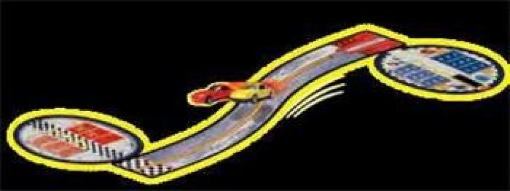 Wheel-shaped storage chest/carry case opens up into 74 x 84cm race track. Includes two die cast cars and pockets to store 6 cars.