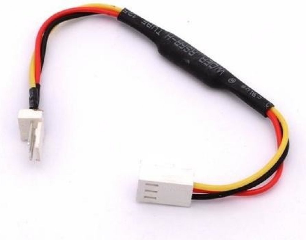 Napájecí kabel 3pin na 3pin se snížením napájení na z 12V na 9V, tj. např. pro snížení otáček ventilátorů. Velmi vhodné pro odhlučňování počítačů.