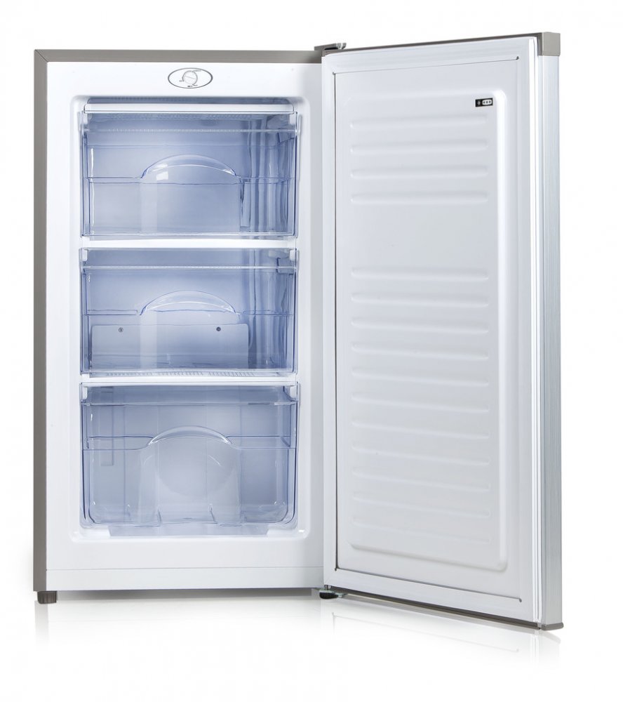 Volně stojící šuplíkový mrazák s velmi úsporným provozem energetické třídy D ve stříbrné barvě. Kompaktní rozměry a výška do 85 cm jej předurčují k použití v rekreačních objektech, nebo jako vhodné rozšíření mrazící kapacity vaší kombinované lednice.