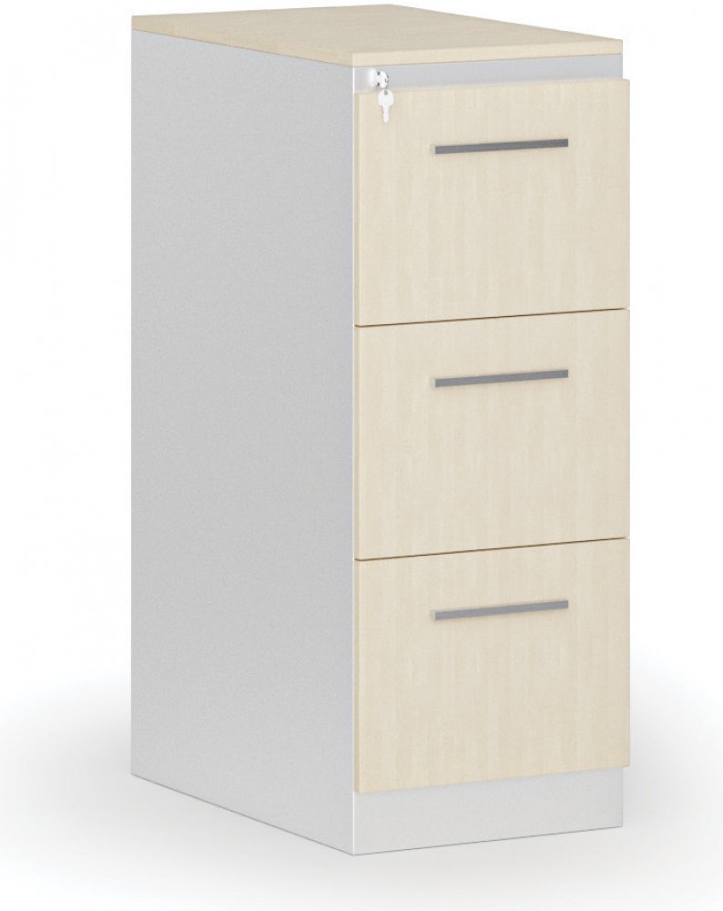 · korpus kartotéky z ocelového plechu se dvěma, třemi, čtyřmi nebo pěti zásuvkami pro formát závěsné složky A4 · čela a horní deska z laminované dřevotřísky tl.18 mm opatřeny hranou ABS tl. 1 mm · zásuvky jsou osazeny teleskopickými kuličkovými pojezdy se 100% výsuvem zásuvky pro snadnější práci s dokumenty · pojezd zásuvek je velmi lehký a tichý · nosnost zásuvky je 30 kg · systém blokace zásuvek...