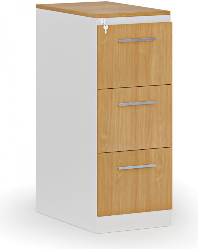 · korpus kartotéky z ocelového plechu se dvěma, třemi, čtyřmi nebo pěti zásuvkami pro formát závěsné složky A4 · čela a horní deska z laminované dřevotřísky tl.18 mm opatřeny hranou ABS tl. 1 mm · zásuvky jsou osazeny teleskopickými kuličkovými pojezdy se 100% výsuvem zásuvky pro snadnější práci s dokumenty · pojezd zásuvek je velmi lehký a tichý · nosnost zásuvky je 30 kg · systém blokace zásuvek...