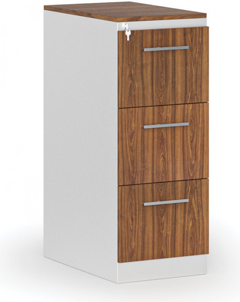 · korpus kartotéky z ocelového plechu se dvěma, třemi, čtyřmi nebo pěti zásuvkami pro formát závěsné složky A4 · čela a horní deska z laminované dřevotřísky tl.18 mm opatřeny hranou ABS tl. 1 mm · zásuvky jsou osazeny teleskopickými kuličkovými pojezdy se 100% výsuvem zásuvky pro snadnější práci s dokumenty · pojezd zásuvek je velmi lehký a tichý · nosnost zásuvky je 30 kg · systém blokace zásuvek...