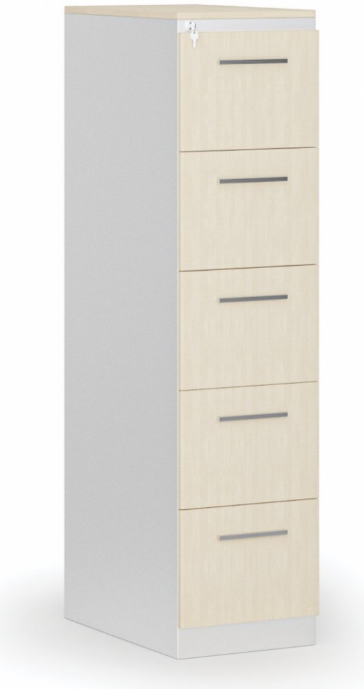 · korpus kartotéky z ocelového plechu se dvěma, třemi, čtyřmi nebo pěti zásuvkami pro formát závěsné složky A4 · čela a horní deska z laminované dřevotřísky tl.18 mm opatřeny hranou ABS tl. 1 mm · zásuvky jsou osazeny teleskopickými kuličkovými pojezdy se 100% výsuvem zásuvky pro snadnější práci s dokumenty · pojezd zásuvek je velmi lehký a tichý · nosnost zásuvky je 30 kg · systém blokace zásuvek...