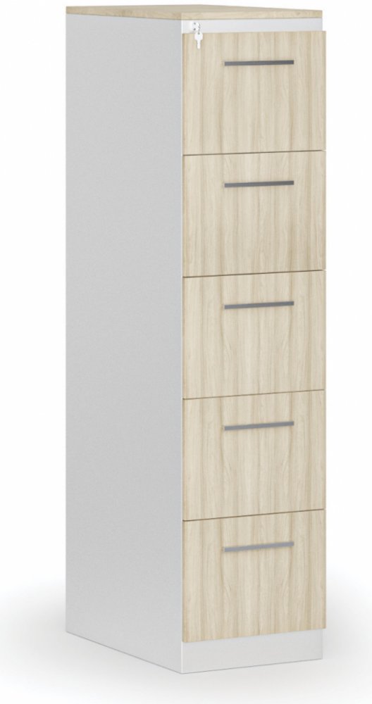 · korpus kartotéky z ocelového plechu se dvěma, třemi, čtyřmi nebo pěti zásuvkami pro formát závěsné složky A4 · čela a horní deska z laminované dřevotřísky tl.18 mm opatřeny hranou ABS tl. 1 mm · zásuvky jsou osazeny teleskopickými kuličkovými pojezdy se 100% výsuvem zásuvky pro snadnější práci s dokumenty · pojezd zásuvek je velmi lehký a tichý · nosnost zásuvky je 30 kg · systém blokace zásuvek...