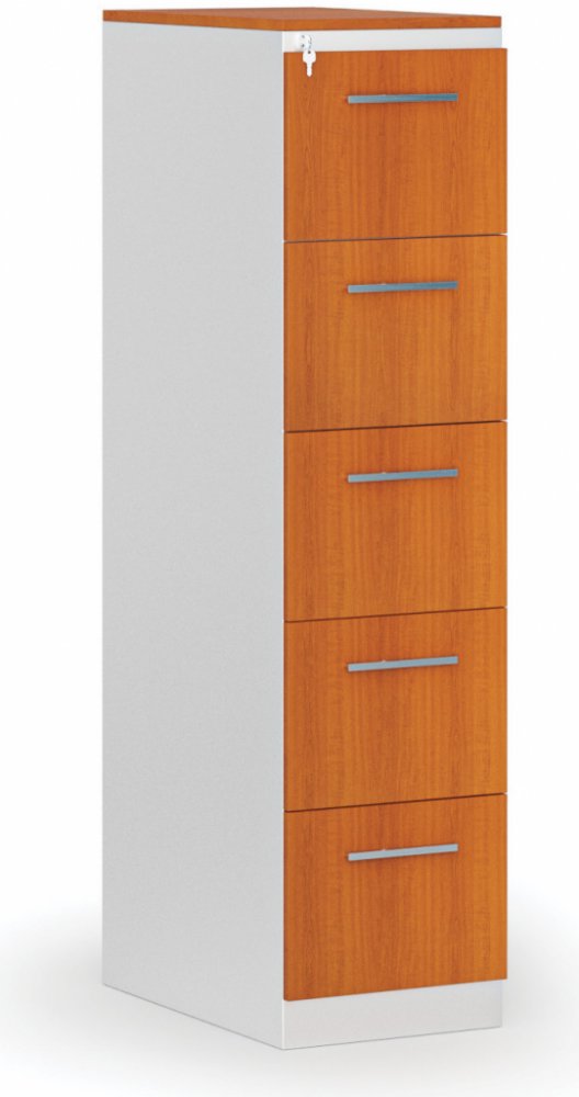 · korpus kartotéky z ocelového plechu se dvěma, třemi, čtyřmi nebo pěti zásuvkami pro formát závěsné složky A4 · čela a horní deska z laminované dřevotřísky tl.18 mm opatřeny hranou ABS tl. 1 mm · zásuvky jsou osazeny teleskopickými kuličkovými pojezdy se 100% výsuvem zásuvky pro snadnější práci s dokumenty · pojezd zásuvek je velmi lehký a tichý · nosnost zásuvky je 30 kg · systém blokace zásuvek...