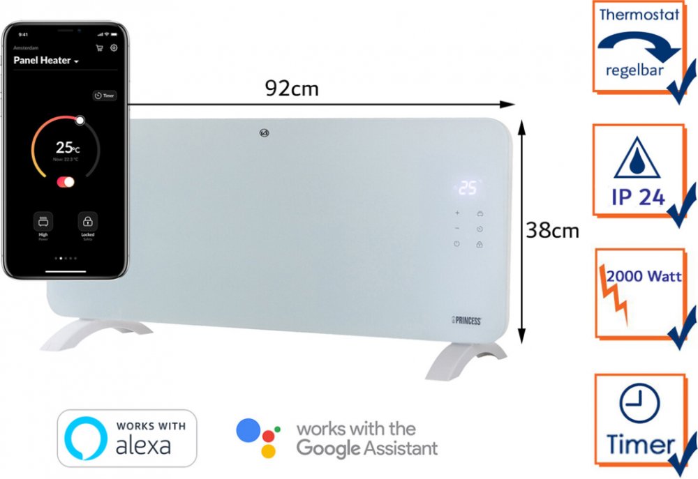 Přímotop Princess se může hodit v případě, pokud chcete mít záložní zdroj tepla či posilu k jiným topidlům. Konkrétní typ dokáže díky topnému výkonu 2000 W vyhřát prostor o velikosti až 60 m3. Veškeré důležité informace uvidíte na přehledném LED displeji. Konvektor není ochuzen dokonce ani o časovač, díky kterému budete mít plnou kontrolu nad dobou vytápění. O nastavenou teplotu se zde stará integrovaný termostat. Nemusíte se bát, že vašim ratolestem ublíží, protože má dětskou pojistku. Rozměry konvektoru Princess činí 38 × 92 × 9 cm (vך×h). Hlavní vlastnosti přímotopu Princess 348201 SMART Přímotop Princess lze využít jako přídavný či pouze dočasný zdroj vytápění Má výkon 2000 W Dokáže vyhřát místnost dosahující velikosti až 60 m3 Lze využít časovač pro omezení doby vytápění Bezpečnostní pojistka zabrání přehřátí Disponuje zabudovaným termostatem, jenž je schopen regulovat teplotu Reguluje teplotu automaticky Důležité informace vyčtete z LED displeje konvektoru Vzhledově jej doplní líbivá bílá barva