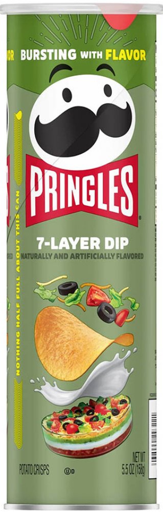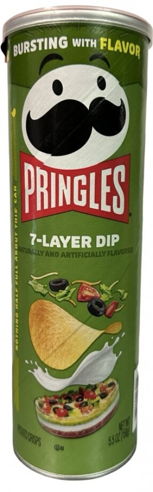 V USA objevíte hromadu místních specialit. Jedním z nich je takzvaný sedmivrstvý dip složený ze 7 základních ingrediencí - na spodní vrstvu z rozmačkaných mexických fazolí přijde smetanová vrstva, na ní zase guacamole, pak sýr, salát, rajčata, cibulka a koření. A tyhle Pringlesky to kombinují všechno dohromady