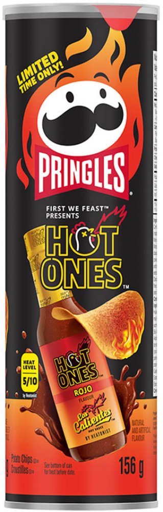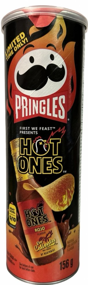 Oblíbené chipsy Pringles v pálivé limitované edici s příchutí omáčky Los Calientes Rojo z chilli papriček jalapeños spolu s pikantními bylinkami v omáčce Rojo. Stupeň pálivosti 5/10.