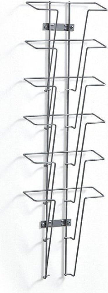 Nástěnné drátěné přihrádky ve tvaru V, určené na formát A4 na výšku. Ideální na vystavení brožur, letáků a časopisů v kancelářích, na recepcích či v čekárnách.Nástěnný zásobník na prospekty je elegantním a prostorově nenáročným řešením pro vystavení nejrůznějších prospektů a časopisů v kancelářích, vstupních prostorách či čekárnách. Držák se upevňuje na stěnu, nikde tedy nepřekáží a působí úhledně. Příhrádky jsou vyrobeny z drátu o síle 3,5 mm a mají tvar písmene V, takže se prospekty snadno vkládají i vyjímají. K dispozici je více velikostí. Povrchová úprava práškovým lakem působí stylově a zvyšuje odolnost.