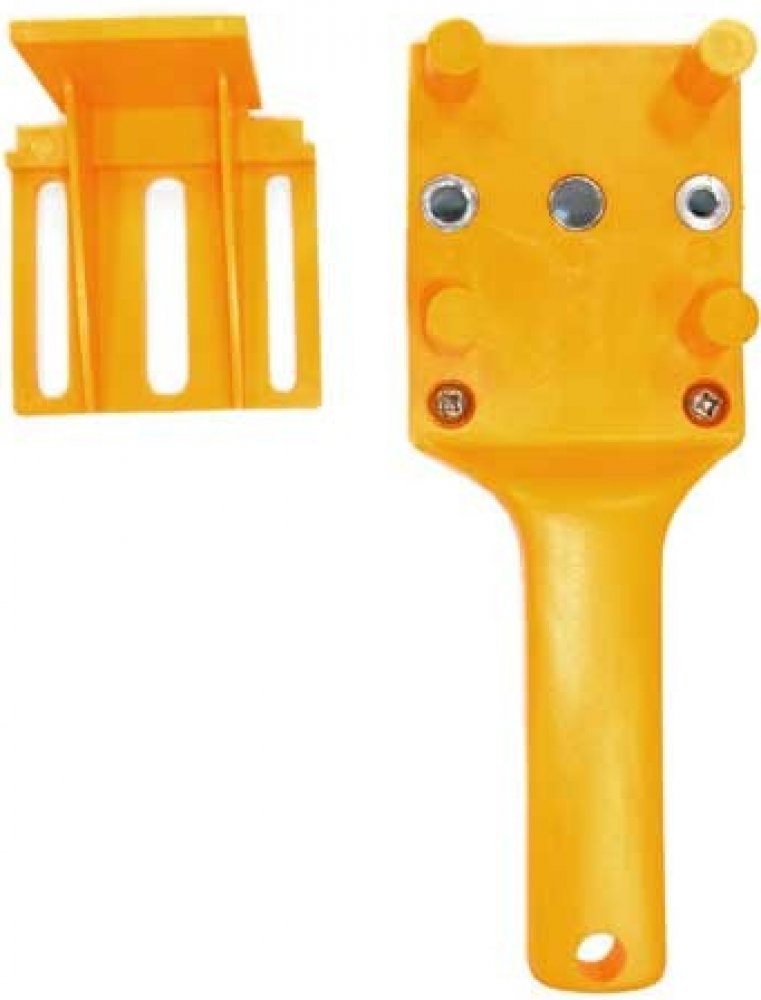 Ruční kolíkovací přípravek pro vytváření spojů T, L a E pomocí kolíků o pr. 6, 8 a 10 mm pro sílu materiálu max. 30mm.Přípravek je vyroben z tvrdého plastu a vrtací otvory jsou opatřeny kalenými kovovými pouzdry zalisovanými do plastového těla.Přípravek umožňuje spojování dílců kolíky o průměru 6 mm, 8 mm a 10 mm.K tomuto účelu slouží tři otvory, každý o jiném průměru.Přípravkem můžete spojovat:- dřevotřískové a laminované desky- prkna- spárovky- materiál na bázi dřeva o tloušťce od 10 mm do 30 mm.Pro kolíkování s přípravkem budete potřebovat spojovací kolíky, ostrou tužku, úhelník a vrták s hloubkovým dorazem pro nastavení vrtané hloubky. (Vrtáky o pr. 6, 8 a 10 mm)
