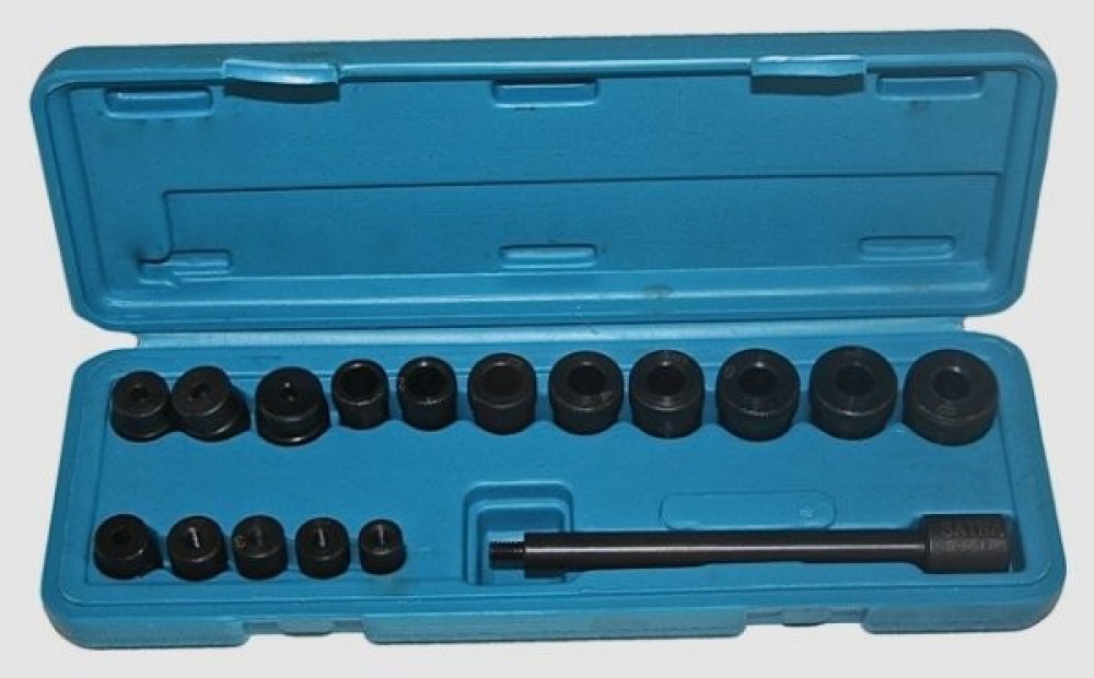 Přípravek pro vystředění spojky profi ASTA S-FS17P, A-17UCAPřípravek pro vystředění lamel spojky bez vodícího ložiska v klikové hřídeli (vozidla s předním náhonem a příčně uloženým motorem).Vhodné pro vozidla: Audi, Citroen, Fiat, Ford, Honda, Mazda, Mitsubishi, Nissan, Opel, Peugeot, Renault, Rover, Saab, Toyota, Vauxhall, VW, Volvo Sada obsahuje:Vybíjecí trn - 140 mm 8 středících prstenců- 15.5 x 14.2 x 26.6 mm - nr.1- 16.7 x 15.4 x 27.0 mm - nr.2- 19.0 x 17.5 x 28.0 mm - nr.3- 20.0 x 18.6 x 27.5 mm - nr.4- 21.4 x 20.0 x 27.4 mm - nr.5- 23.0 x 21.6 x 27.5 mm - nr.6- 23.5 x 22.0 x 27.5 mm - nr.7- 26.6 x 24.2 x 27.5 mm - Nr.8 8 prstenců vybíjecích- 12.6 x 10.8 x 19.2 mm nr. 1- 14.8 x 12.2 x 19.4 mm - nr.2- 15.0 x 13.5 x 19.3 mm - nr.3- 16.0 x 14.7 x 19.7 mm - nr.4- 17.7 x 15.8 x 19.4 mm - nr.5- 19.0 x 17.1 x 19.3 mm - nr.6- 20.0 x 18.3 x 19.1 mm - nr.7- 21.6 x 20.0 x 19.1 mm - Nr.8