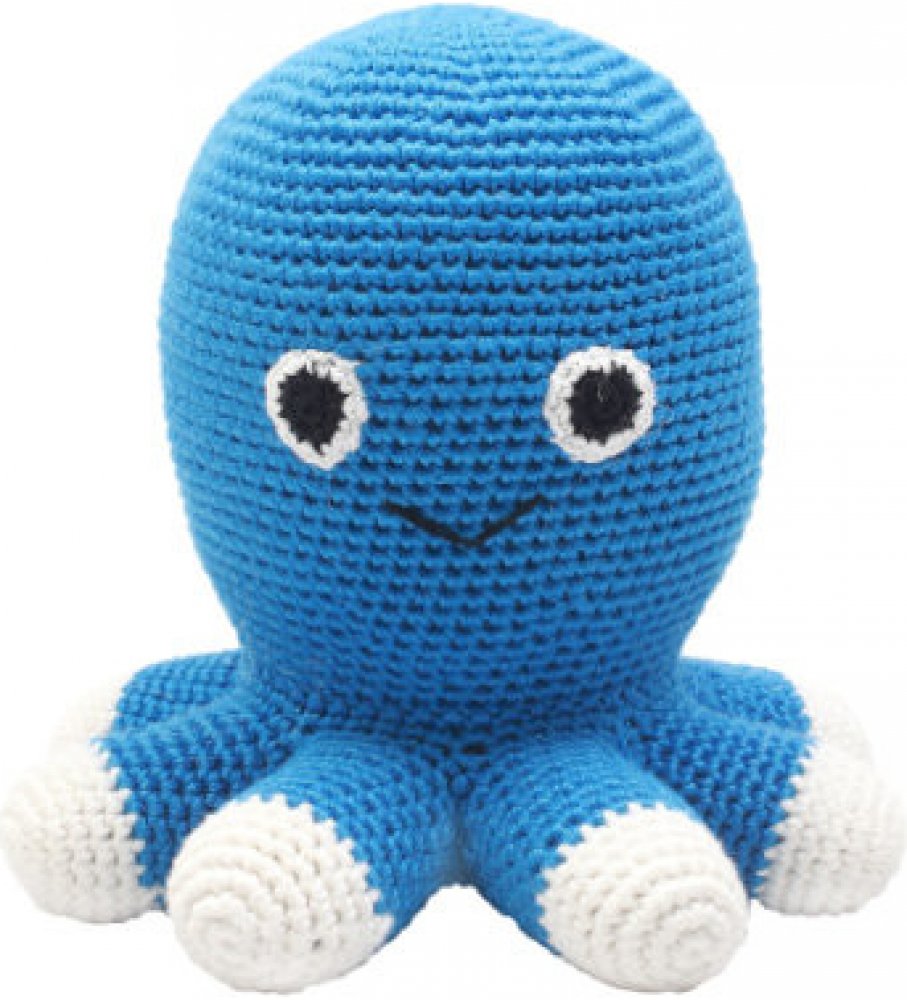 Malá dánská společnost Nature Zoo se specializuje na háčkované hračky pro kojence. Přírodní zoo navíc klade velký důraz na použité materiály a kvalitu, takže výrobky jsou vyráběny ručně. Pracuje se hlavně s bambusovou přízí nebo plyšovou bavlnou. Všechny tyto materiály podléhají Oeko-Tex Standard 100 a jsou zakoupeny od společností, které jsou certifikovány FSC. Kromě toho je bambusová příze velmi jemnou přízí, která dokonale zapadá do měkkosti dětské pokožky. Tato krásná ručně vyráběná plyšová hračka je navržena ve tvaru chobotnice. Díky měkké bambusové přízi vás modrá chobotnice zve k mazlení a dětským očím září. Kromě toho plyšová hračka udělá potěšující vřískot, když stisknete její břicho. Výrobek lze prát ručně při 30 ° C. Podrobnosti: rozměry: 15 x 15 x 20 cm Materiál: Oeko-Tex certifikovaná bambusová příze Výplň: Oeko-Tex certifikovaný polyester Kundtstoffquietscher uvnitř Hmotnost: 200 g Pokyny pro péči: 30 ° C Mytí rukou Věk: od narození