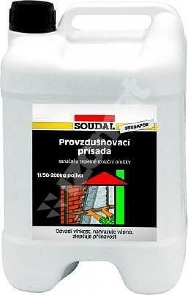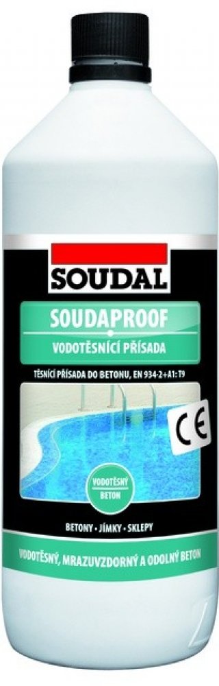 Přísada vodotěsnicí SOUDAL Soudaproof 5 l. SOUDAL Soudaproof je přísada vhodná pro výrobu konstrukcí, které mají odolávat vnějšímu tlaku vody (opěrné stěny, podzemní podlaží, sklepy, základy, podlahy, střechy, montážní jámy apod.) nebo být schopny zadržovat či vést vodu (bazény, nádrže, umělá jezírka, jímky, vodoteče, koryta apod.)