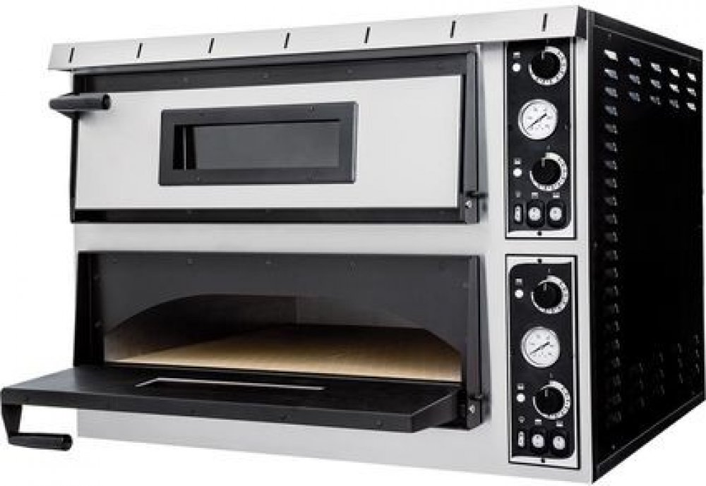 Výkonná elektrická pizza pece řady PLUS XL - dvoukomorová. Snadné mechanické ovládání umožňuje individuální nastavení výkonu 3 spodních a 3 horních vysokoteplotních pancéřovaných těles (rychlý náběh a optimální rozložení teploty) v komoře. Možnost zcela vypnout spodní/horní tělesa. Komora je vybavena komínkem, analogovým teploměrem a termostatem do 500°C. Robustní pec, kvalitní izolace z minerální...