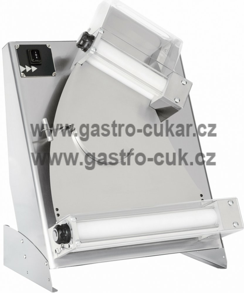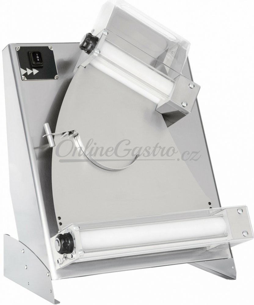 Vyvalovací lis DSA 420 T.GOA na těsto je komplet v robustním celonerezovém provedení, 2 páry polohovatelných plastových lisovacích válců uložených šikmo nad sebou, s tvarovacím zařízením a mechanickým ovládáním. Jedinečné ovládání TOUCH AND GO pozná pomocí senzorů vložení těsta. Na panelu lze nastavit čas chodu 10-35 sekund.
