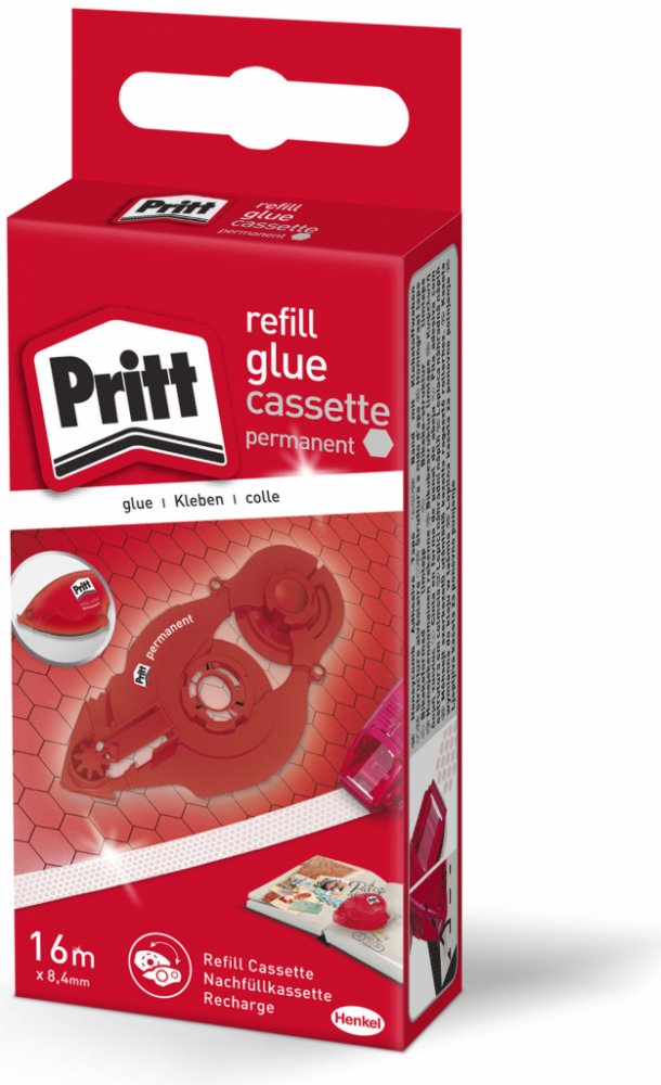 2111973 Pritt Refill náhradní náplň permanent Lepicí roller s vyměnitelnou náplní na karton, fotografie, fólie a umělé hmoty. Lepicí páska s inovativní strukturou včelího plástve pro vynikající přilnutí a čisté a precizní lepení. Roller s permanentním (trvalým) filmem, který umožňuje přesné nanesení lepidla. Návin 16 m