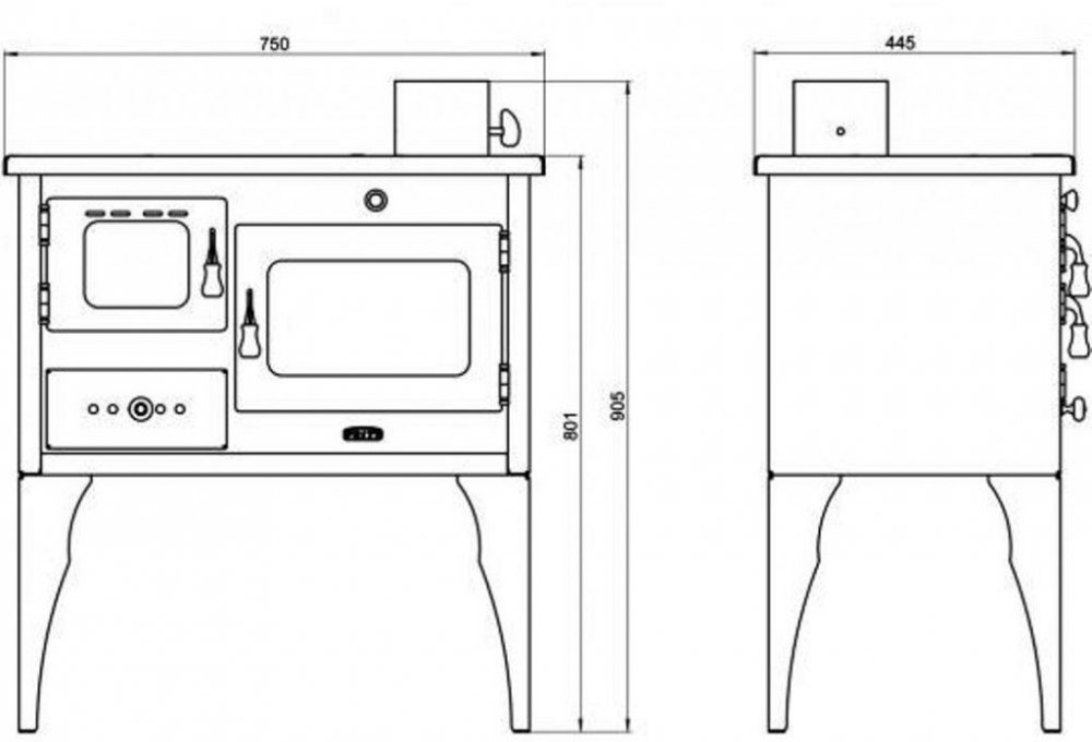 Prity černé dřevo a dřevěné brikety pravé 345 x 380 x 200 mm 67 kg 80 cm 75 cm 45 cm ocelové 34 cm 10 kW 3.2 kg/hod 77 % s troubou 130 mm horní