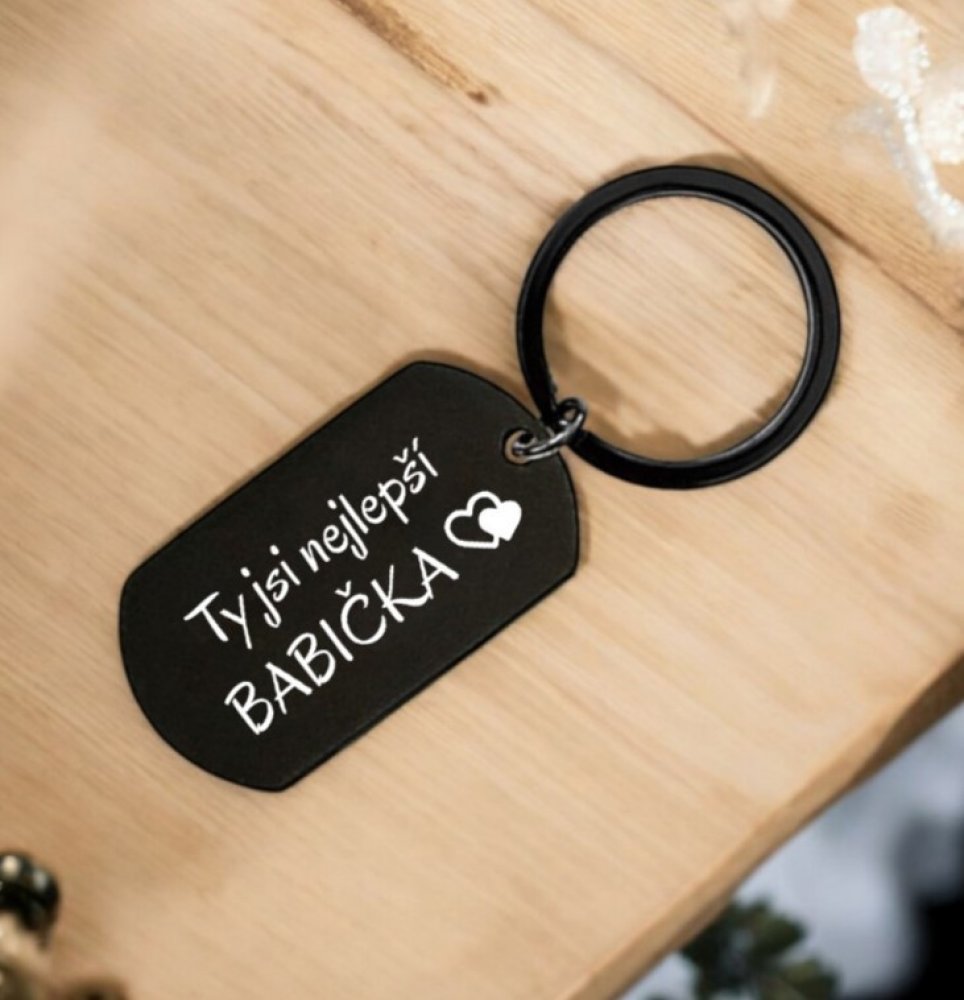 Kovová klíčenka s vygravírovaným vzkazem v lesklé černé barvě. Dárek od srdce, který udělá opravdovou radost. Zkombinujte praktičnost s osobním dotekem.