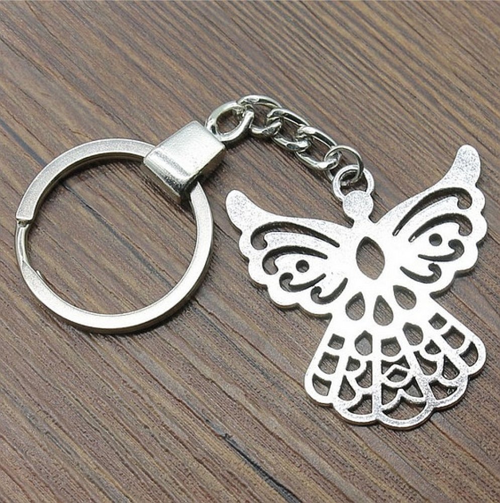Kovový přívěšek na klíče s andělem strážným ve stříbrné barvě vám bude stále připomínat, že andělé jsou okolo vás a že jsou také s vámi.