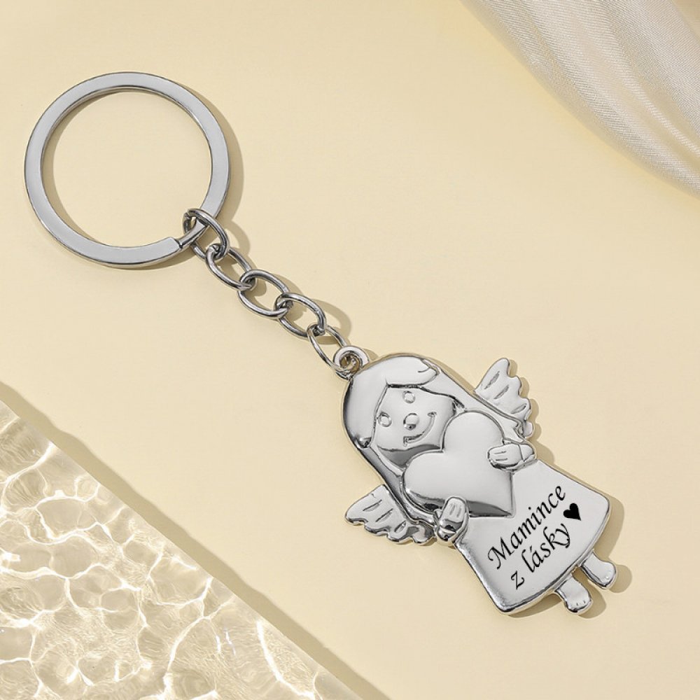 Váš strážný anděl na klíčích - Přívěsek andělíček s možností gravírování!Noste symbol ochrany, naděje a lásky stále při sobě, nebo ho darujte někomu blízkému. Tento něžný kovový přívěsek ve tvaru andělíčka je krásným talismanem pro štěstí.Proč si pořídit tohoto andělíčka?Symbol ochrany a naděje - Anděl strážný jako tichý společník na vašich cestách i v každodenním životě. Přináší pocit bezpečí, klidu a pozitivní energie.Něžný a elegantní design - Jemné linie a lesklý kovový povrch dodávají přívěsku decentní, nevtíravou krásu, která se hodí ke každému stylu.Kvalitní kovové provedení - Přívěsek je vyroben z odolného materiálu, aby vám váš strážný anděl mohl dělat radost a společnost co nejdéle.Dárek plný citu - Perfektní drobný dárek pro maminku, babičku, sestru, kamarádku, partnera, dítě nebo kohokoli, komu přejete štěstí, zdraví a ochranu. Vhodný k jakékoli příležitosti - narozeniny, svátek, Vánoce, pro štěstí u zkoušek, nebo jen tak pro radost.Udělejte ho osobním - Možnost gravírování laserem!Chcete tomuto andělskému přívěsku dodat ještě osobnější vzkaz? Na vaše přání můžeme zajistit gravírování vlastního textu laserem (například jméno, datum, krátké věnování). Vytvořte si jedinečný talisman nebo věnujte dárek s osobním poselstvím!Mějte svého strážného anděla stále nablízku! Pořiďte si tento krásný přívěsek ještě dnes. S možností gravírování je to ten nejosobnější dárek plný lásky a přání všeho dobrého!Velikost: cca 5 x 3,3 cmMateriál: kov