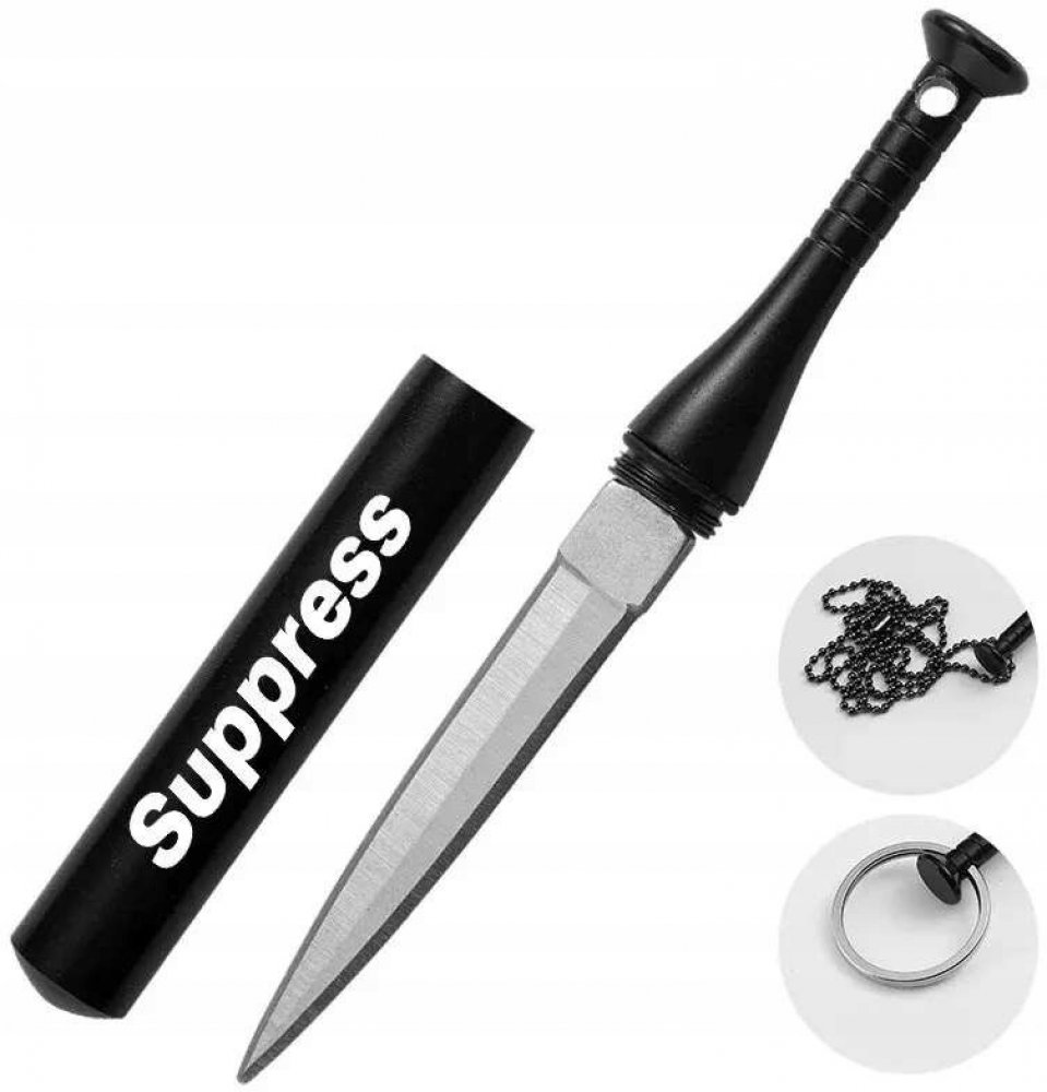 Nůž má závit, můžeme ho vyšroubovat – získáme tak praktický úložný prostor pro předměty, jejichž nalezení by nebylo vítáno, tj. tablety, zlato, bankovky, poznámky např. s heslem