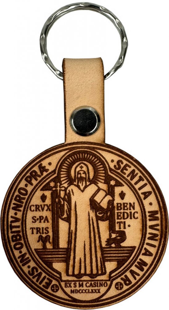 Tato klíčenka z pravé hovězí kůže s motivem Svatého Benedikta je kombinací luxusního designu a duchovní síly. Vyroben...