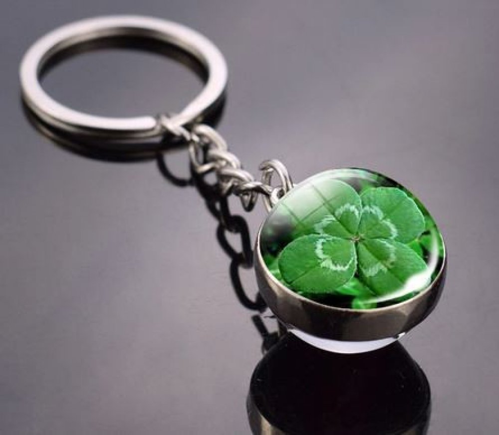 Zábavná klíčenka se čtyřlístkem v bublině. Přívěšek na klíče se čtyřlístkem je originální dárek pro štěstí, který jistě potěší každou veselou duši. Darujte tomu, komu přejete štěstí! Délka klíčenky: 8 cm. Barva: stříbrná, zelená. Materiál: slitina kovu.