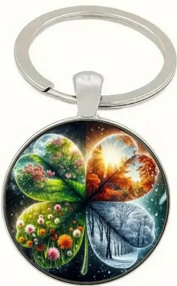 Klíčenka - přívěsek na klíče - čtyřlístek pro štěstí. Uvnitř čtyřlístku jsou 4 roční období - jaro, léto, podzim, zima. Klíčenka se čtyřlístkem je originální dárek pro každého, komu přejete štěstí.
