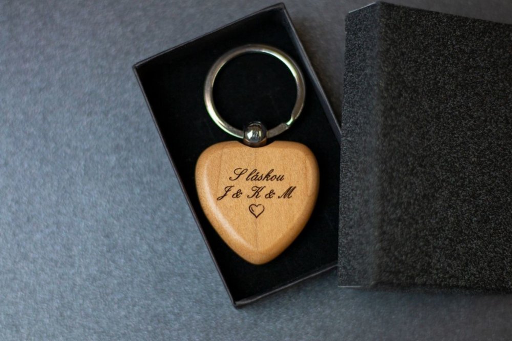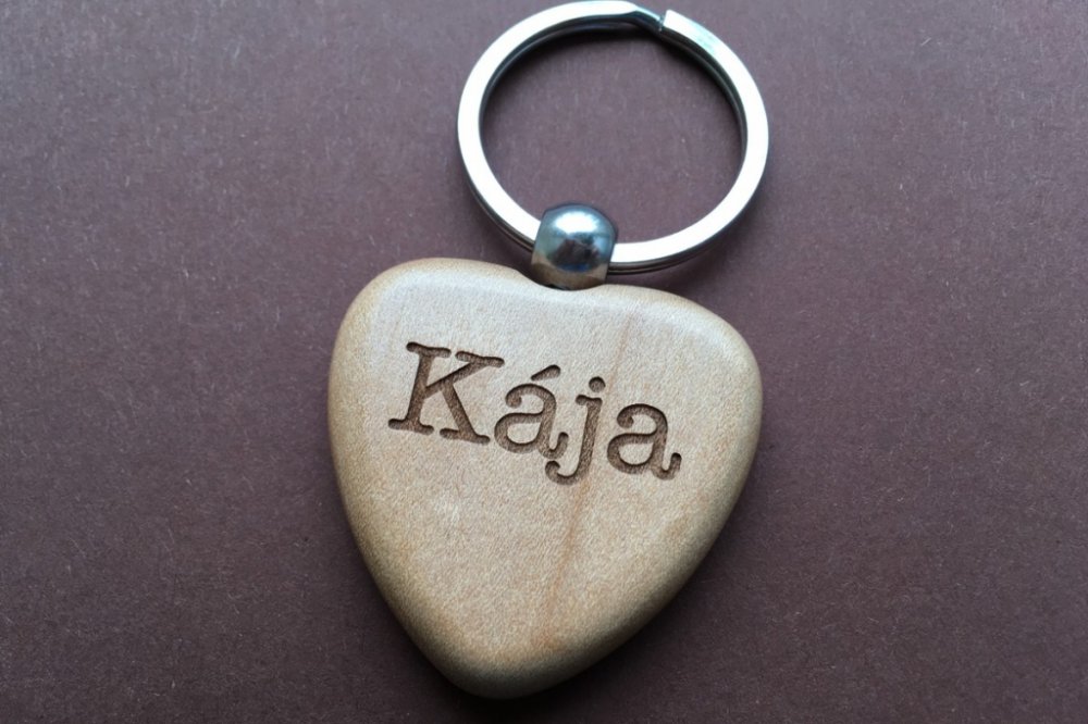 Dřevěná klíčenka z javoru ve tvaru srdce s vlastním textem Originální dárek k Valentýnu, narozeninám, svátku či výročí s hlubokým laserovým gravírováním vlastního textu, monogramů či celých jmen i s datem svatby. Klíčenka ve tvaru srdce je vyrobena z tvrdého masivního dřeva (javor - světlá barva dřeva s tmavšími léty). Barva vypáleného textu laserem je v přírodním tmavém odstínu, jako je na fotogr...