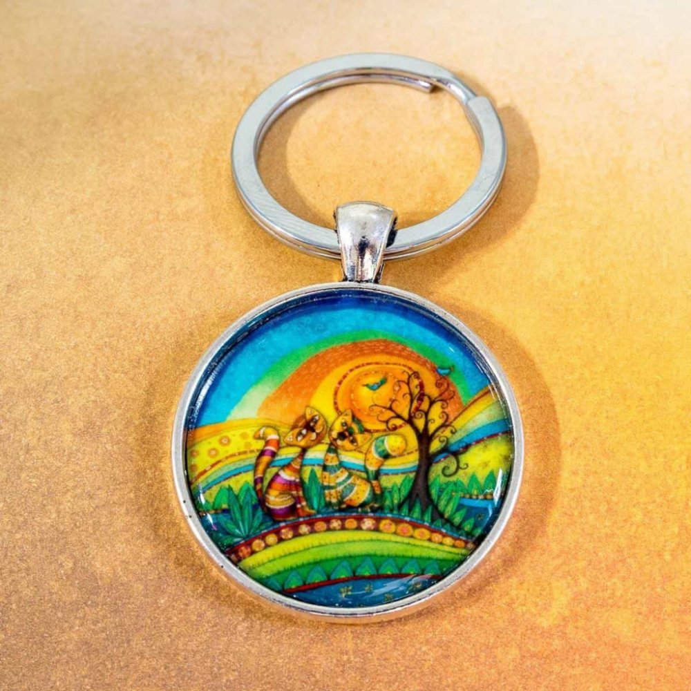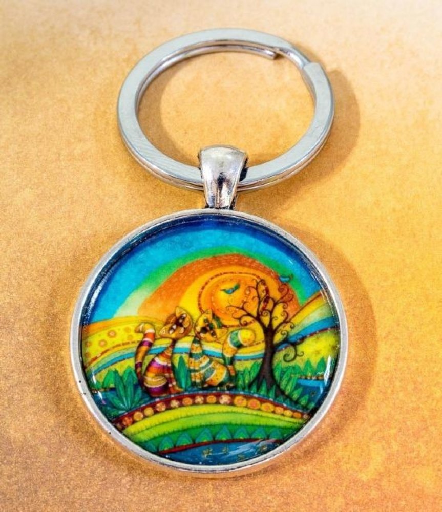 Přívěsek na klíče Duhová kočka Sluneční kočky