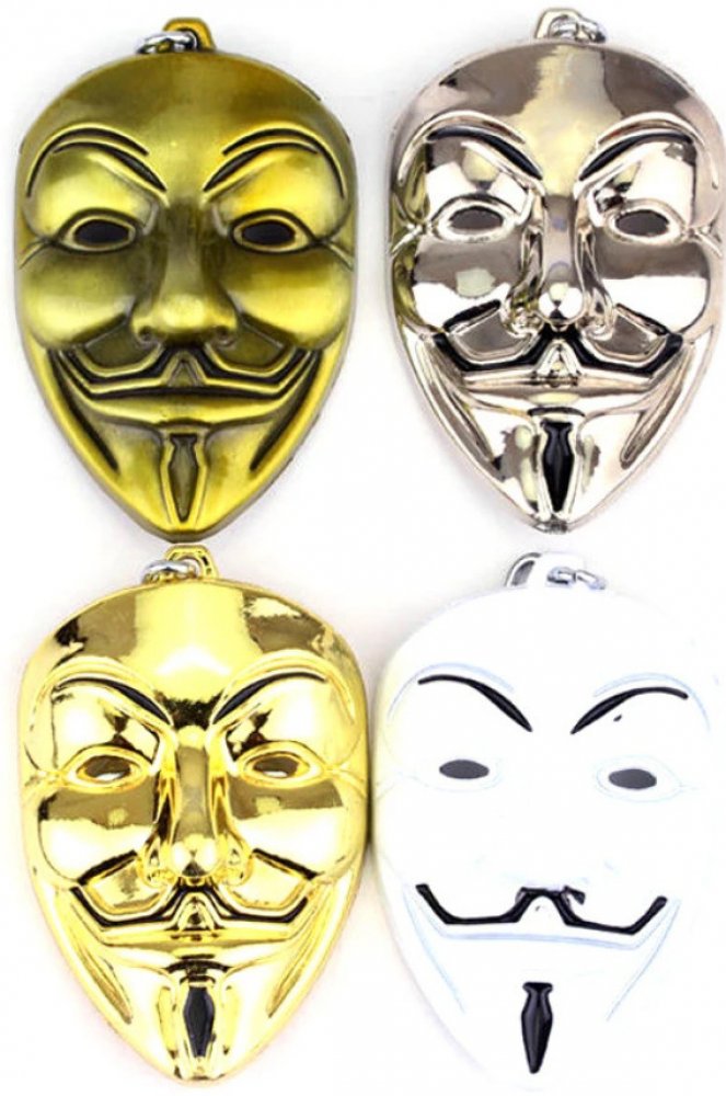 3D přívěsek na klíče znázorňující celosvětově známou masku hackera, která byla nadesignovaná kvůli grafické novele Vendetta.