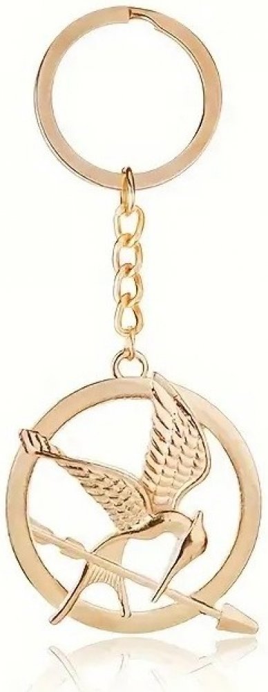 Klíčenka - přívěsek na klíče z knih a filmů Hunger Games - reprodrozd. Klíčenka je zlaté barvy a materiál je bižuterie/slitina kovů.