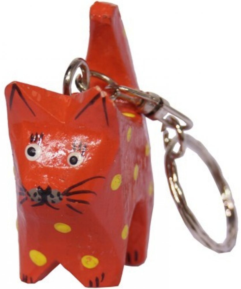 Přívěsek na klíče Indonésie dřevo Kočka červená