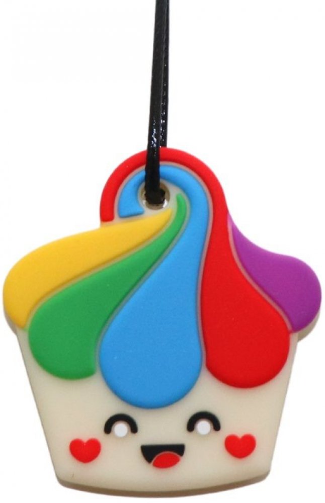 Pokud vaše dítě trápí cumlání prstů, kousání nehtů, tužek, žmoulání triček, vlasů značka Jellystone Designs má pro vás skvělou pomůcku pro zklidnění nervozity a uspokojí potřebu žvýkání. Když se vaše dítě dostane do situace, kdy se cítí nekomfortně a ohroženě, tento přívěsek pomůže navodit klid. Klidné dítě dokáže komunikovat s okolním světem efektivněji a lépe zpracovávat zpětnou vazbu, aniž by zatěžovalo svůj nervový systém. Žvýkací přívěsek připomínající tvar lahodného cupcaku je nejen veselým a roztomilým doplňkem, ale především uklidňujícím přítelem, na kterého se vaše dítě může spolehnout, když hrozí, že jeho den zatemní velké emoce. Přívěsky pro uklidnění jsou zajištěny praktickou šňůrkou se sponou, která je navržená tak, aby se při zatahání snadno rozepnula. Uklidňující kousací přívěsky přívěsky jsou doporučeny ergoterapeuty jako nástroj, který může vaše dítě používat samostatně k rozvoji účinné kontroly reakcí svého nervového systému. Tyto kousací přívěsky jsou vhodné pro děti od 3 let! Středně tvrdý přívěsek je vhodný pro děti, teenagery nebo dospělé se speciálními potřebami, kteří jsou klasifikováni jako "středně silní žvýkači", žvýkají pravidelněji a vyžadují pevnější žvýkací prostředek. Tipy "Jak správně vybrat uklidňující přívěsek" naleznete na našem blogu. Rozměry: 5 x 4,5 x 1 cm, šňůrka: 50 cm Materiál: 100% potravinářský silikon (vyrobeno bez BPA, ftalátů, kadmia a olova)\n\n Tvrdost: střední Váha produktu: 14 g Údržba: Přívěsek lze umýt teplou mýdlovou vodou nebo otřít vlhkým hadříkem UPOZORNĚNÍ: Přívěsky Jellystone Designs jsou určeny pro dospělé se speciálními potřebami a děti od 3 let. Nikdy by je neměly nosit děti do 3 let nebo je nechávat bez dozoru dospělé osoby, kvůli nebezpečí uškrcení. Přívěsky jsou malé části a mohou představovat nebezpečí udušení. Nedovolte, aby vaše dítě žvýkalo sponu – ta se nedá žvýkat. Mějte také na paměti, že žádné kousátko není nezničitelné, takže může být nutné je po určité době vyměnit. U dětí či osob se speciálními potřebami použijte prosím svůj vlastní úsudek o vhodnosti tohoto produktu.