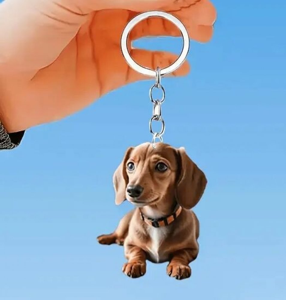 Klíčenka - přívěsek na klíče - s hnědým jezevčíkem. Klíčenka jezevčík, co má tmavá očička a čumáček, je vhodná pro všechny milovníky jezevčíků.