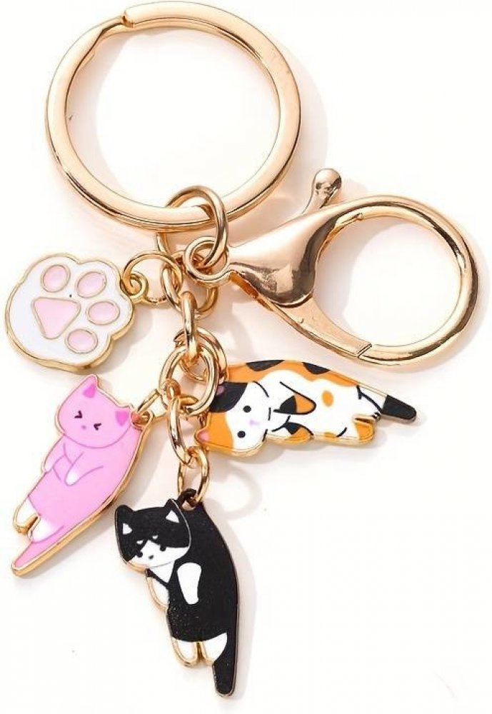 Klíčenka - přívěsek na klíče  - s kočkou. Na klíčence, která má i karabinku, jsou hned tři kočičky. Každá je jinak z barvená, na klíčence je i kočičí tlapička. Skvělý dárek pro milovníky koček.