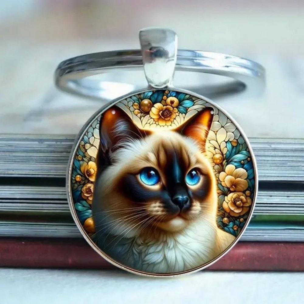 Klíčenka - přívěsek na klíče - s kočkou s průzračnýma modrýma očima. Klíčenka kočka se bude skvěle vyjímat na klíčích milovníka koček.