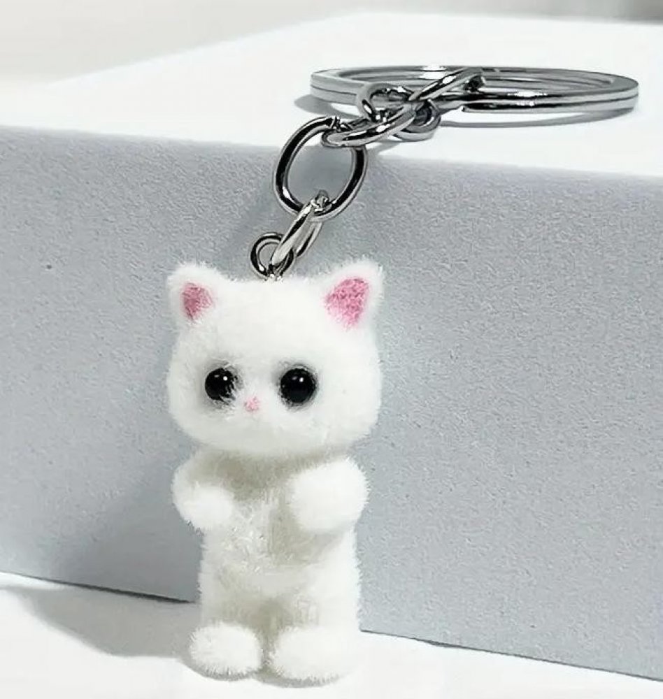 Klíčenka - přívěsek na klíče - s malým roztomilým bílým koťátkem. Klíčenka kočka se bude skvěle vyjímat na klíčích či kabelce milovníka koček. Kočička je na dotyk hebká, působí to dojmem, že má "opravdový" kožíšek.