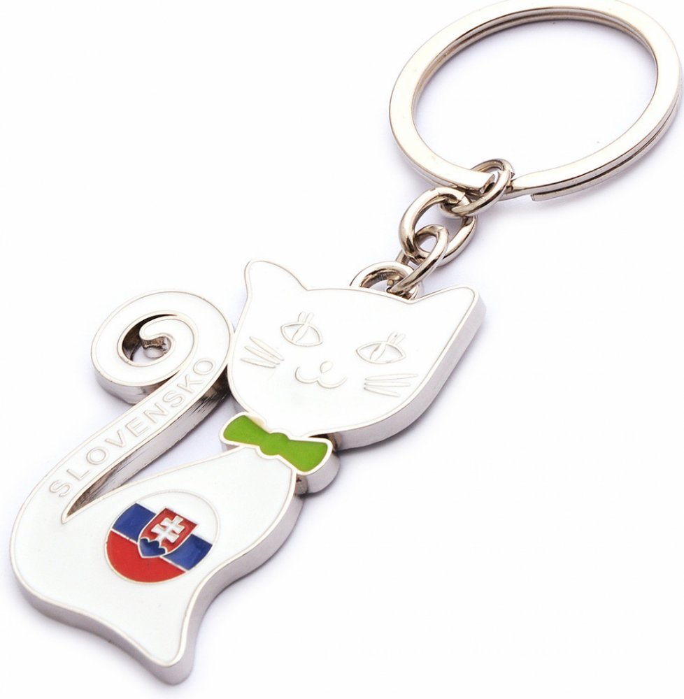 Přívěsek na klíče Kočka Slovensko bílá