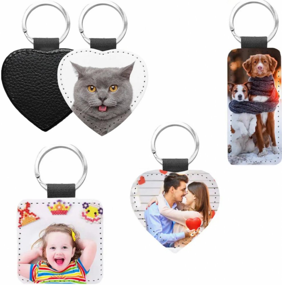 Přívěsek na klíče Kožená s vlastní fotkou Srdce