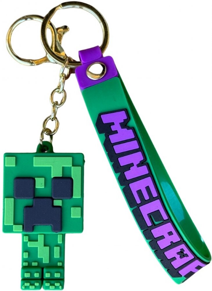 Dětská klíčenka s motivem postavičky ze seriálu Minecraft. Klíčenka má postavičku, gumové poutko, připevněné na kroužku na klíče, součástí je i karabina pro přípnutí.